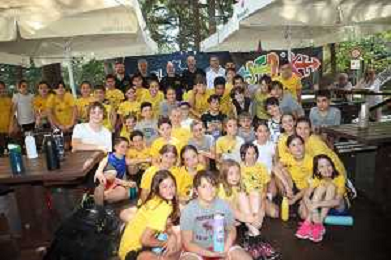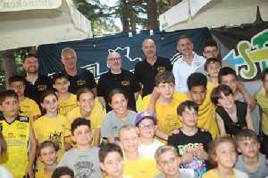 IMOLA 17-06-2024 PRESENTAZIONE DEL NUOVO ALLENATORE DELLA VIRTUS IMOLA BASKET SERIE B1 GIAN LUIGI GALETTI NELLA FOTO GIAN LUIGI GALETTI E LO STAFF DELLA VIRTUS ASSIEME AI BAMBINI DELLA VIRTUS BASKET FOTO GIANNI SANNA-AG ALDO LIVERANI SAS