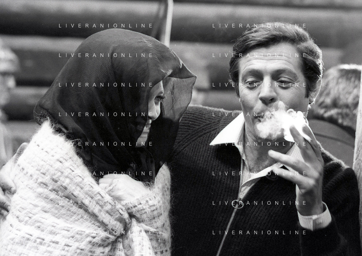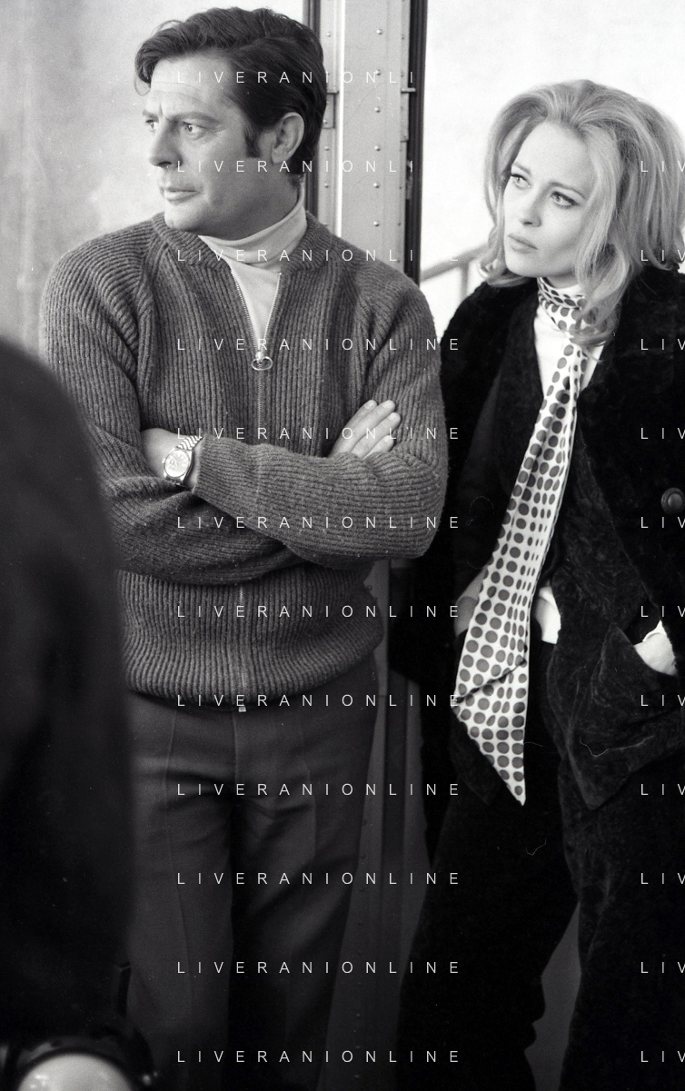 NEG-RETROSPETTIVA MARCELLO MASTROIANNI, ATTORE NELLA FOTO MARCELLO MASTOIANNI CON FAYE DUNAWAY DURANTE LE RIPRESE CINEMATOGRAFICHE DEL FILM “AMANTI“ ANNO 1968 REGISTA VITTORIO DE SICA AGENZIA ALDO LIVERANI SAS