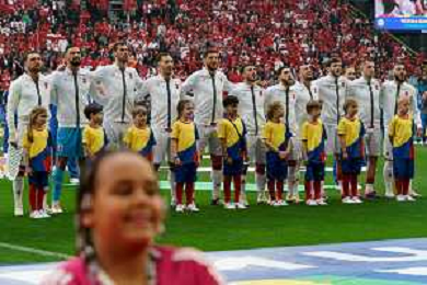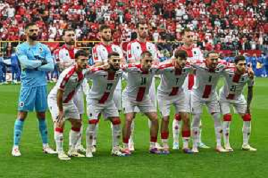 TVEM Georgia players during the national anthem prior the UEFA EURO 2024 group stage match between Turkey and Georgia at Westfalenstadion on June 18, 2024 in Dortmund, Germany. Photo by Emmanuele Mastrodonato/ag. Aldo Liverani sas/AGENZIA ALDO LIVERANI SAS