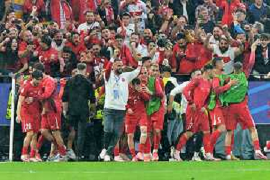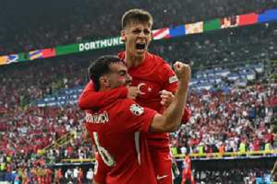 TVEM Arda Guler of Turkey celebrates after scoring a goal with teammates during the UEFA EURO 2024 group stage match between Turkey and Georgia at Westfalenstadion on June 18, 2024 in Dortmund, Germany. Photo by Emmanuele Mastrodonato/ag. Aldo Liverani sas/AGENZIA ALDO LIVERANI SAS