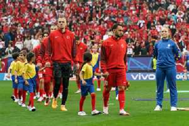 TVEM the players of Turkey enter the field during the UEFA EURO 2024 group stage match between Turkey and Georgia at Westfalenstadion on June 18, 2024 in Dortmund, Germany. Photo by Emmanuele Mastrodonato/ag. Aldo Liverani sas/AGENZIA ALDO LIVERANI SAS