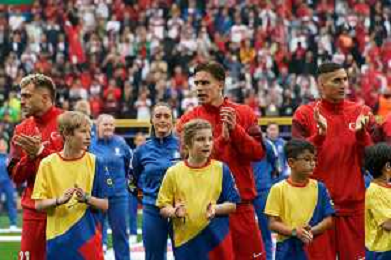TVEM Turkey players during the national anthem prior the UEFA EURO 2024 group stage match between Turkey and Georgia at Westfalenstadion on June 18, 2024 in Dortmund, Germany. Photo by Emmanuele Mastrodonato/ag. Aldo Liverani sas/AGENZIA ALDO LIVERANI SAS