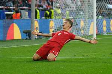 TVEM Mert Muldur of Turkey celebrates after scoring a goal during the UEFA EURO 2024 group stage match between Turkey and Georgia at Westfalenstadion on June 18, 2024 in Dortmund, Germany. Photo by Emmanuele Mastrodonato/ag. Aldo Liverani sas/AGENZIA ALDO LIVERANI SAS