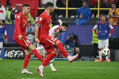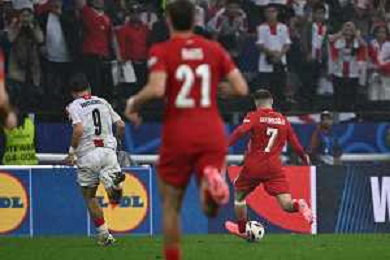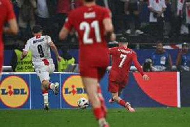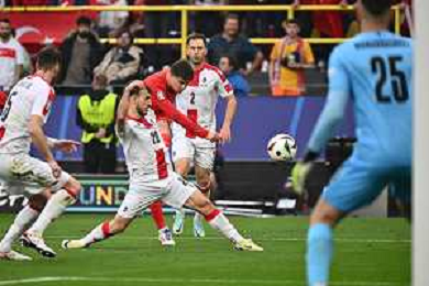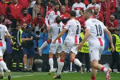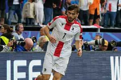 TVEM Georges Mikautadze of Georgia celebrates after scoring a goal during the UEFA EURO 2024 group stage match between Turkey and Georgia at Westfalenstadion on June 18, 2024 in Dortmund, Germany. Photo by Emmanuele Mastrodonato/ag. Aldo Liverani sas/AGENZIA ALDO LIVERANI SAS