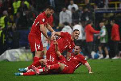 TVEM Mert Müldür of Turkey celebrates after scoring a goal with teammates during the UEFA EURO 2024 group stage match between Turkey and Georgia at Westfalenstadion on June 18, 2024 in Dortmund, Germany. Photo by Emmanuele Mastrodonato/ag. Aldo Liverani sas/AGENZIA ALDO LIVERANI SAS