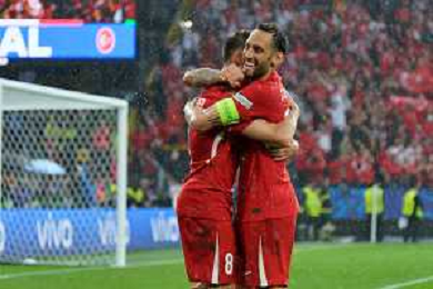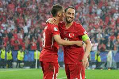 TVEM Arda Güler of Turkey celebrates after scoring a goal with Hakan Calhanoglu of Turkey during the UEFA EURO 2024 group stage match between Turkey and Georgia at Westfalenstadion on June 18, 2024 in Dortmund, Germany. Photo by Emmanuele Mastrodonato/ag. Aldo Liverani sas