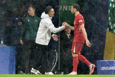 TVEM Vincenzo Montella head coach of Turkey and Hakan Calhanoglu of Turkey during the UEFA EURO 2024 group stage match between Turkey and Georgia at Westfalenstadion on June 18, 2024 in Dortmund, Germany. Photo by Emmanuele Mastrodonato/ag. Aldo Liverani sas