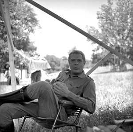 NEG-RETROSPETTIVA MARCELLO MASTROIANNI ATTORE NELLA FOTO MARCELLO MASTROIANNI SUL SET DEL FILM “ LA DECIMA VITTIMA“ NELL'ANNO 1965 AG ALDO LIVERANI SAS