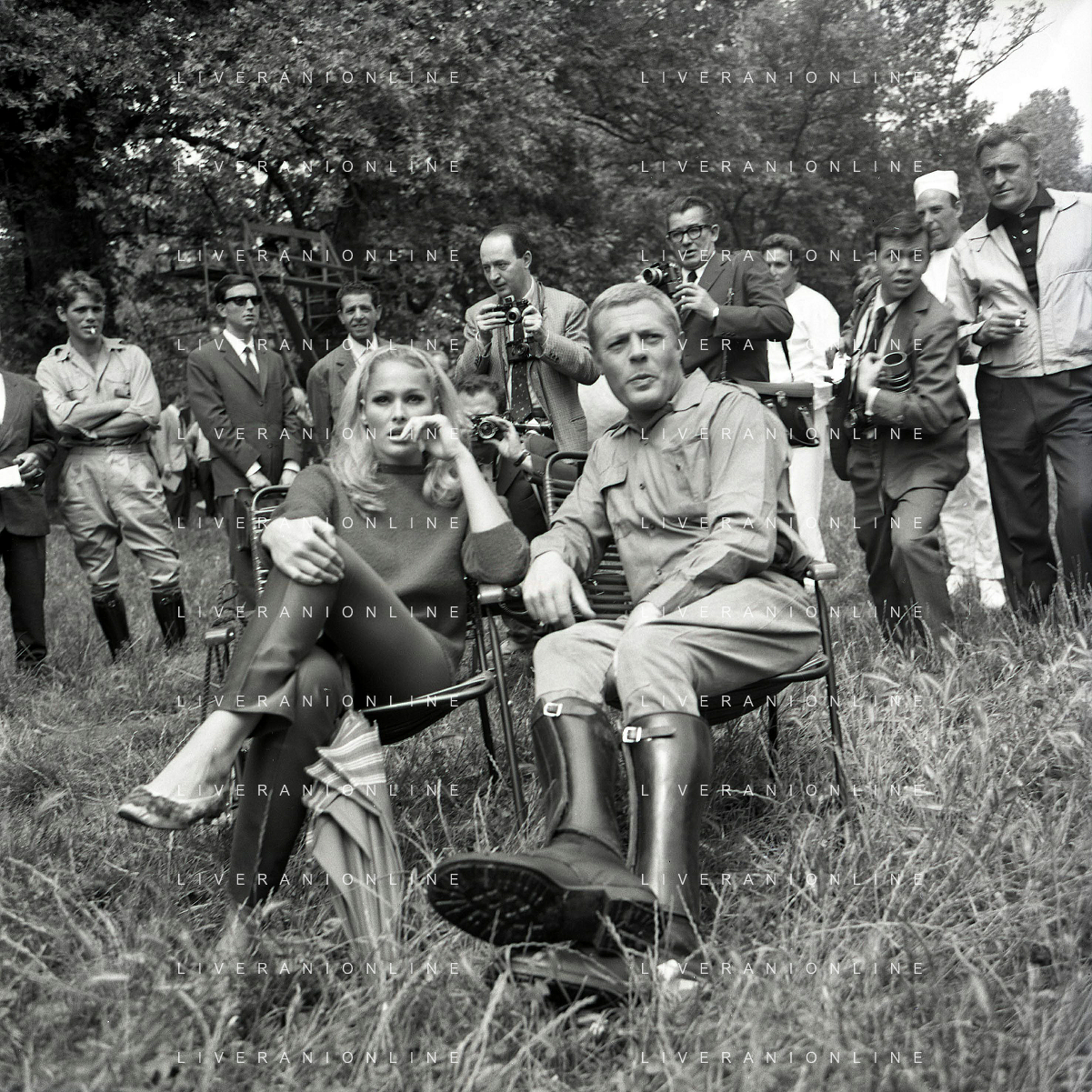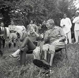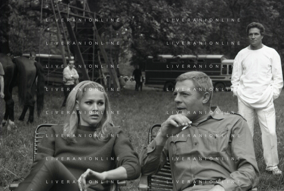 NEG-RETROSPETTIVA MARCELLO MASTROIANNI ATTORE NELLA FOTO MARCELLO MASTROIANNI CON URSULA ANDRESS SUL SET DEL FILM “ LA DECIMA VITTIMA“ NELL'ANNO 1965 AG ALDO LIVERANI SAS