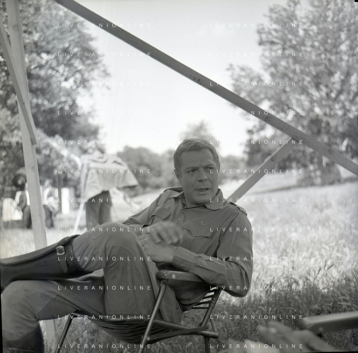 NEG- RETROSPETTIVA MARCELLO MASTROIANNI ATTORE NELLA FOTO MARCELLO MASTROIANNI SUL SET DEL FILM “LA DECIMA VITTIMA“ NELL'ANNO 1965 REGISTA ELIO PETRI AG ALDO LIVERANI SAS