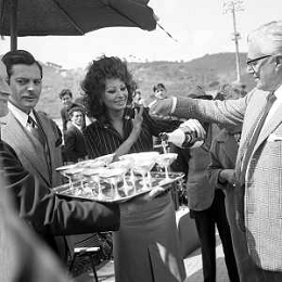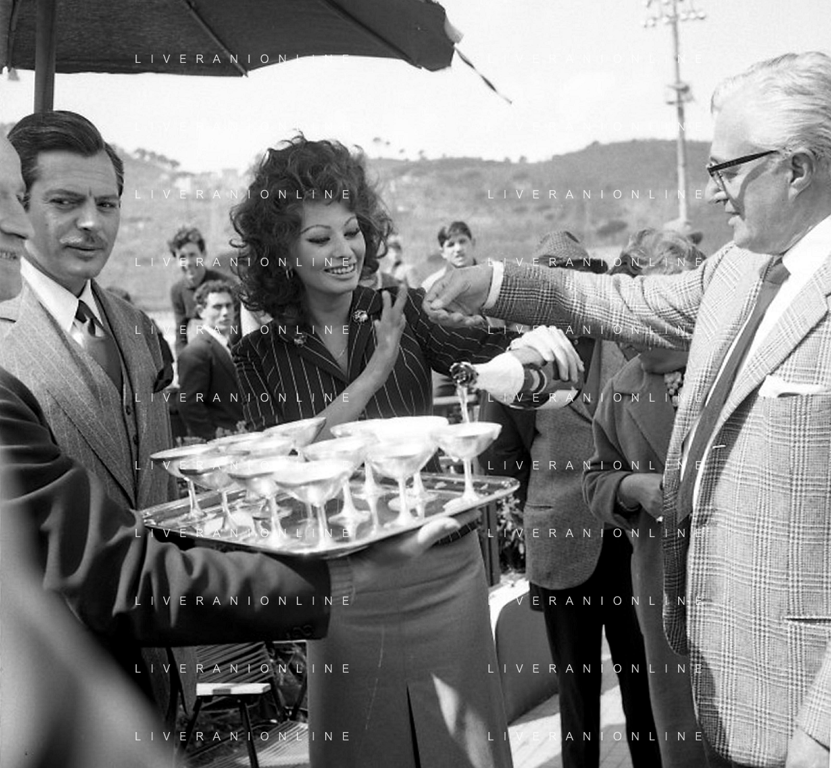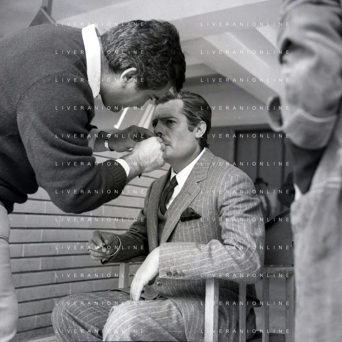 NEG-RETROSPETTIVA MARCELLO MASTROIANNI ATTORE NELLA FOTO MARCELLO MASTROIANNI CON SOPHIA LOREN SUL SET DEL FILM“ MATRIMONIO ALL'ITALIANA“NELL'ANNO 1964 CON VITTORIO DE SICA AG ALDO LIVERANI SAS