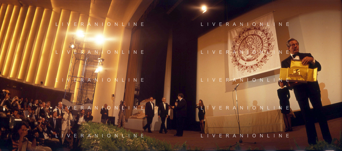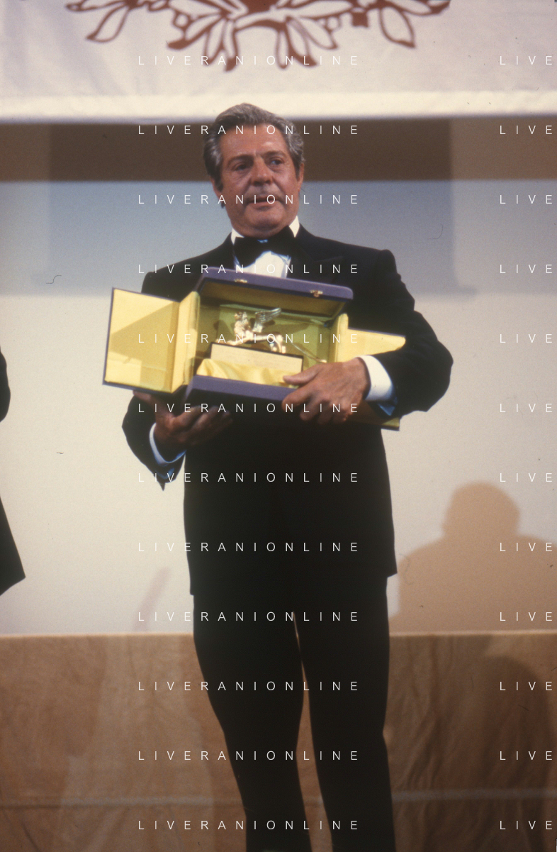 DIAP-RETROSPETTIVA MARCELLO MASTROIANNI ATTORE NELLA FOTO MARCELLO MASTROIANNI ALLA PREMIAZIONE DEL LEONE D'ORO ALLA CARRIERA A VENEZIA NELL'ANNO 1990 MOSTRA INTERNAZIONALE DEL CINEMA AG ALDO LIVERANI SAS