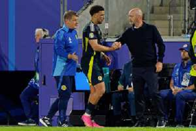 TVEM Ché Adams of Scotland and Steve Clarke head coach of Scotland during the UEFA EURO 2024 group stage match between Scotland and Switzerland at Cologne Stadium on June 19, 2024 in Cologne, Germany. Photo by Emmanuele Mastrodonato/ag. Aldo Liverani sas/AGENZIA AGENZIA ALDO LIVERANI SAS