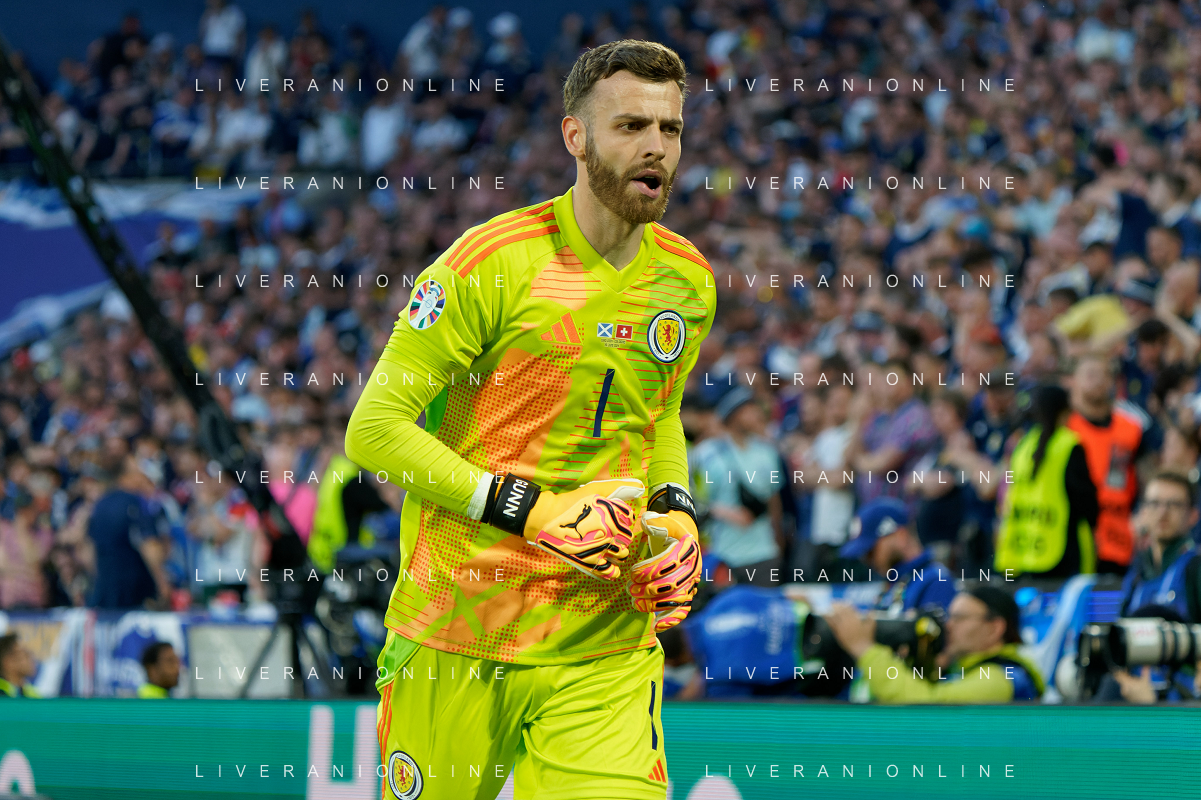 TVEM Angus Gunn of Scotland during the UEFA EURO 2024 group stage match between Scotland and Switzerland at Cologne Stadium on June 19, 2024 in Cologne, Germany. Photo by Emmanuele Mastrodonato/ag. Aldo Liverani sas/AGENZIA AGENZIA ALDO LIVERANI SAS