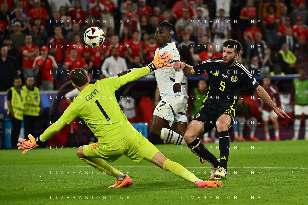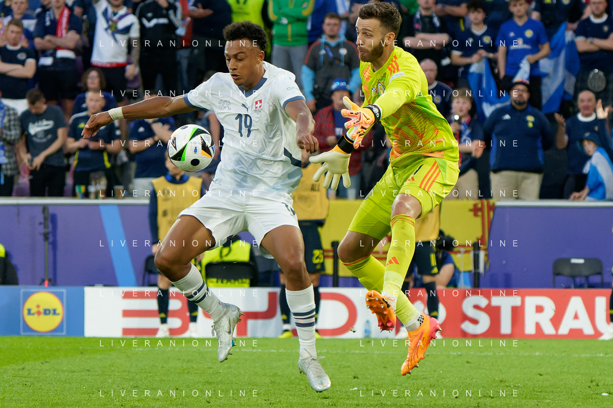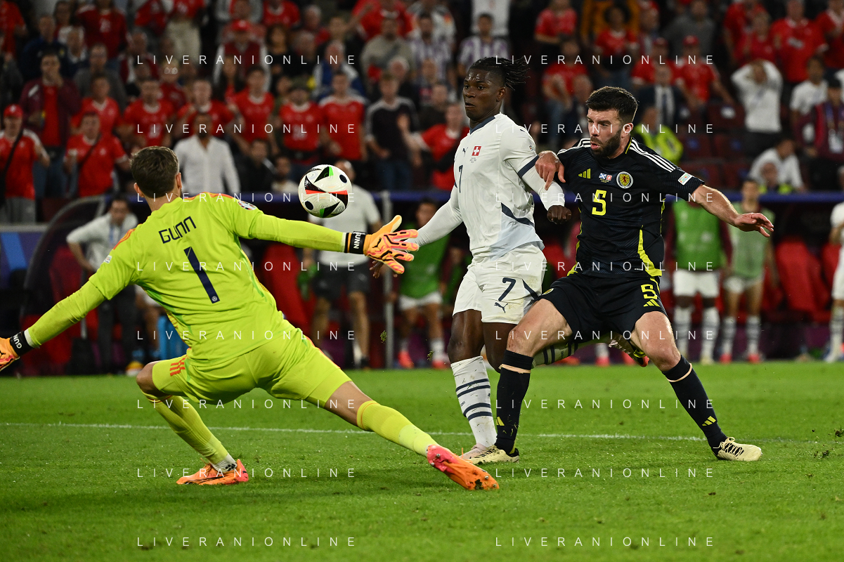 TVEM Dan Ndoye of Swiss in action against Angus Gunn of Scotland during the UEFA EURO 2024 group stage match between Scotland and Switzerland at Cologne Stadium on June 19, 2024 in Cologne, Germany. Photo by Emmanuele Mastrodonato/ag. Aldo Liverani sas/AGENZIA AGENZIA ALDO LIVERANI SAS