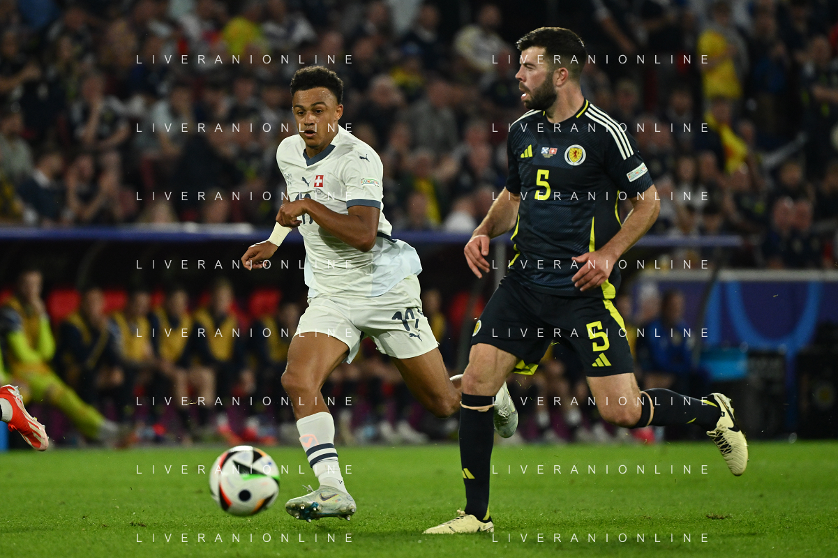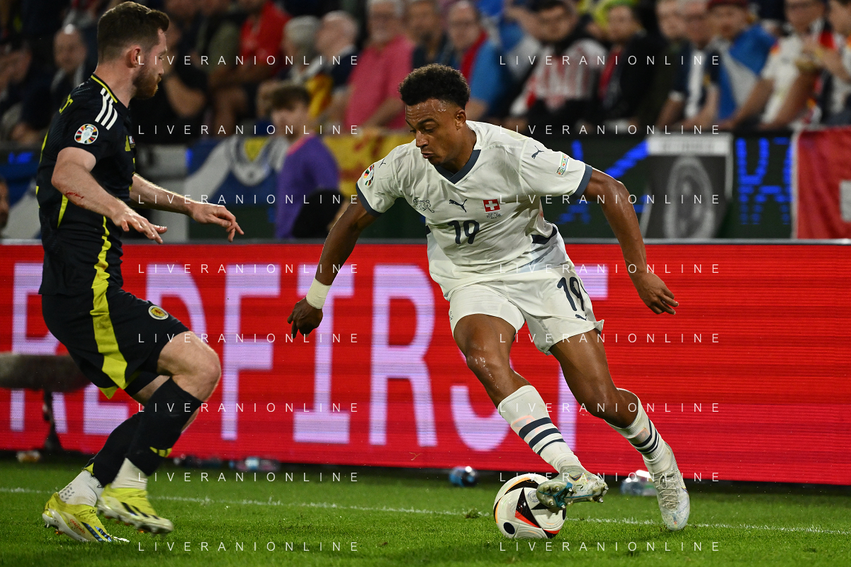TVEM Kieran Tierney of Scotland and Dan Ndoye of Swiss during the UEFA EURO 2024 group stage match between Scotland and Switzerland at Cologne Stadium on June 19, 2024 in Cologne, Germany. Photo by Emmanuele Mastrodonato/ag. Aldo Liverani sas/AGENZIA AGENZIA ALDO LIVERANI SAS