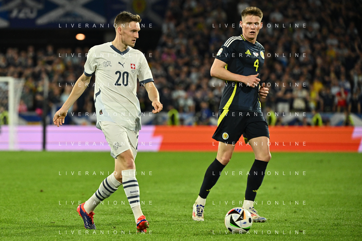 Scozia vs Svizzera - UEFA EURO 2024 nella foto Michel Aebischer (Svizzera) e sulla DX Scott McTominay (Scozia) Colonia (GER) 19-06-2024 Cologne Stadium - RheinEnergieStadion Campionato Europeo di Calcio - UEFA EURO 2024 fase a gironi - 2a giornata Gruppo A foto Roberto Garavaglia/Agenzia Aldo Liverani sas/AGENZIA AGENZIA ALDO LIVERANI SAS