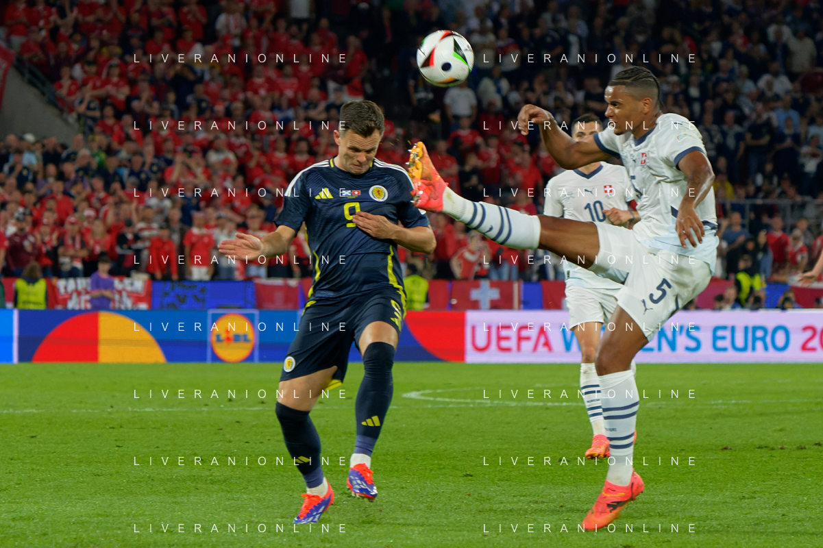 TVEM Manuel Akanji of Swiss in action against Lawrence Shankland of Scotland during the UEFA EURO 2024 group stage match between Scotland and Switzerland at Cologne Stadium on June 19, 2024 in Cologne, Germany. Photo by Emmanuele Mastrodonato/ag. Aldo Liverani sas/AGENZIA AGENZIA ALDO LIVERANI SAS