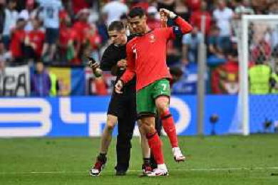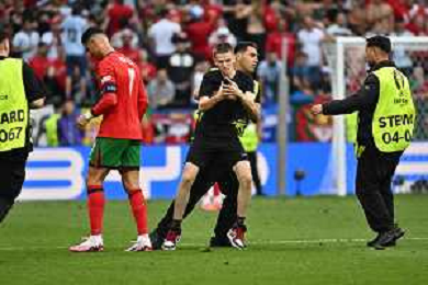 Turchia vs Portogallo - UEFA EURO 2024 nella foto Cristiano Ronaldo (Portogallo) infastidito da un dei tanti invasori di campo che hanno provato a farsi un selfie con lui nei minuti finali della gara Dortmund (GER) 22-06-2024 BVB Stadion Dortmund - Westfalenstadion Signal Iduna Park Campionato Europeo di Calcio - UEFA EURO 2024 fase a gironi - 2a giornata Gruppo F foto Roberto Garavaglia/Agenzia Aldo Liverani sas/AGENZIA ALDO LIVERANI SAS