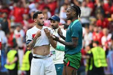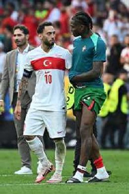 Turchia vs Portogallo - UEFA EURO 2024 nella foto Hakan Calhanoglu (Turchia) e Rafael Leao (Portogallo) si salutano a fine gara Dortmund (GER) 22-06-2024 BVB Stadion Dortmund - Westfalenstadion Signal Iduna Park Campionato Europeo di Calcio - UEFA EURO 2024 fase a gironi - 2a giornata Gruppo F foto Roberto Garavaglia/Agenzia Aldo Liverani sas/AGENZIA ALDO LIVERANI SAS