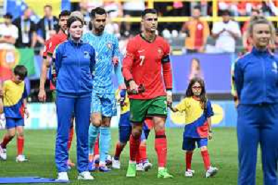 Turchia vs Portogallo - UEFA EURO 2024 nella foto Cristiano Ronaldo (Portogallo) saluta due bambine dopo gli inni nazionali Dortmund (GER) 22-06-2024 BVB Stadion Dortmund - Westfalenstadion Signal Iduna Park Campionato Europeo di Calcio - UEFA EURO 2024 fase a gironi - 2a giornata Gruppo F foto Roberto Garavaglia/Agenzia Aldo Liverani sas/AGENZIA ALDO LIVERANI SAS