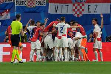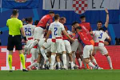 TVEM Croatia celebrates after scoring a goal during the UEFA EURO 2024 group stage match between Croatia and Italy at Leipzig Stadium on June 24, 2024 in Lipsia, Germany. Photo by Emmanuele Mastrodonato/ag. Aldo Liverani sas