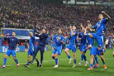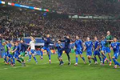 TVEM players of Italy celebrates the victory during the UEFA EURO 2024 group stage match between Croatia and Italy at Leipzig Stadium on June 24, 2024 in Lipsia, Germany. Photo by Emmanuele Mastrodonato/ag. Aldo Liverani sas