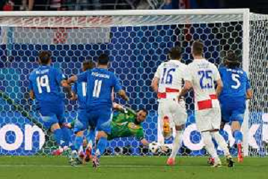 TVEM Gianluigi Donnarumma of Italy penalty saved during the UEFA EURO 2024 group stage match between Croatia and Italy at Leipzig Stadium on June 24, 2024 in Lipsia, Germany. Photo by Emmanuele Mastrodonato/ag. Aldo Liverani sas
