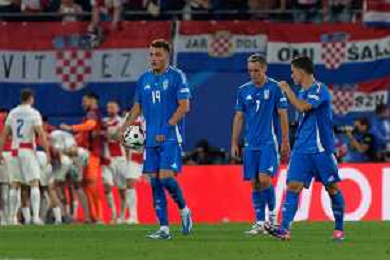 TVEM Mateo Retegui of Italy, Giacomo Raspadori of Italy and Davide Frattesi of Italy disappointed during the UEFA EURO 2024 group stage match between Croatia and Italy at Leipzig Stadium on June 24, 2024 in Lipsia, Germany. Photo by Emmanuele Mastrodonato/ag. Aldo Liverani sas
