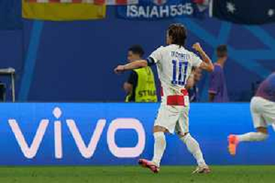 TVEM Luka Modric of Croatia celebrates after scoring a goal during the UEFA EURO 2024 group stage match between Croatia and Italy at Leipzig Stadium on June 24, 2024 in Lipsia, Germany. Photo by Emmanuele Mastrodonato/ag. Aldo Liverani sas