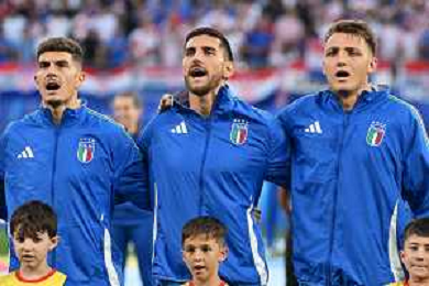 Croazia vs Italia - UEFA EURO 2024 nella foto da SX Giovanni Di Lorenzo (Italia), Lorenzo Pellegrini (Italia) e Mateo Retegui (Italia) durante l'Inno Nazionale Lipsia (GER) 24-06-2024 Leipzig Stadium - Red Bull Arena Campionato Europeo di Calcio - UEFA EURO 2024 fase a gironi - 3a giornata Gruppo B foto Roberto Garavaglia/Agenzia Aldo Liverani sas