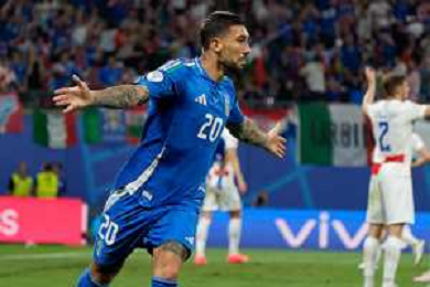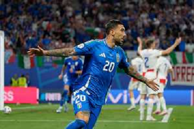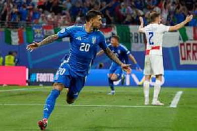 TVEM Mattia Zaccagni of Italy celebrates after scoring a goal with teammates during the UEFA EURO 2024 group stage match between Croatia and Italy at Leipzig Stadium on June 24, 2024 in Lipsia, Germany. Photo by Emmanuele Mastrodonato/ag. Aldo Liverani sas/ AGENZIA ALDO LIVERANI SAS
