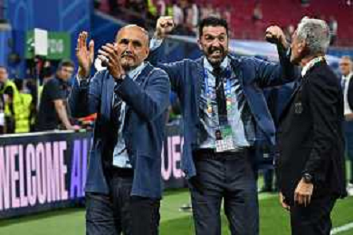 Croazia vs Italia - UEFA EURO 2024 nella foto da SX Luciano Spalletti allenatore Italia , Gianluigi Buffon capo delegazione Italia e Gabriele Gravina presidente FIGC salutano i tifosi Italia prima di lasciare lo stadio Lipsia (GER) 24-06-2024 Leipzig Stadium - Red Bull Arena Campionato Europeo di Calcio - UEFA EURO 2024 fase a gironi - 3a giornata Gruppo B foto Roberto Garavaglia/Agenzia Aldo Liverani sas