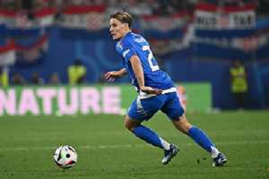 TVEM Riccardo Calafiori of Italy during the UEFA EURO 2024 group stage match between Croatia and Italy at Leipzig Stadium on June 24, 2024 in Lipsia, Germany. Photo by Emmanuele Mastrodonato/ag. Aldo Liverani sas/ AGENZIA ALDO LIVERANI SAS