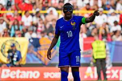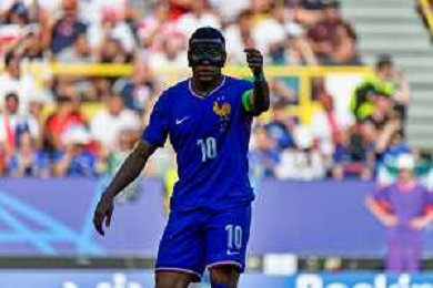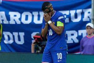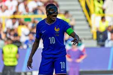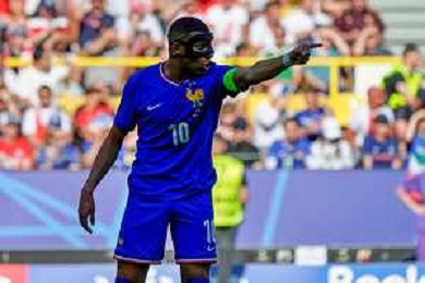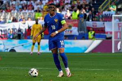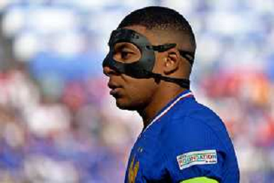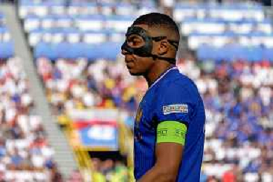 TVEM Kylian Mbappé of France puts on the mask during the UEFA EURO 2024 group stage match between France and Poland at BVB Stadion Dortmund on June 25, 2024 in Dortmund, Germany. Photo by Emmanuele Mastrodonato/ag. Aldo Liverani sas