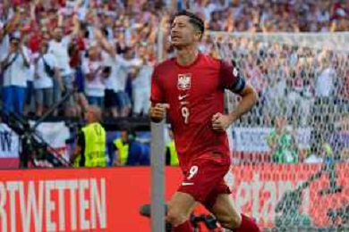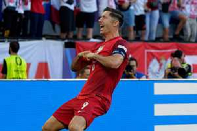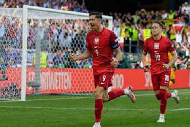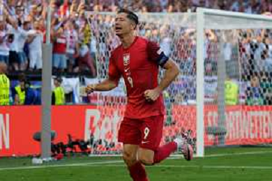 TVEM Robert Lewandowski of Poland celebrates after scoring a goal during the UEFA EURO 2024 group stage match between France and Poland at BVB Stadion Dortmund on June 25, 2024 in Dortmund, Germany. Photo by Emmanuele Mastrodonato/ag. Aldo Liverani sas