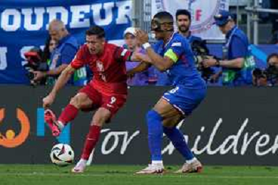 TVEM Kylian Mbappé of France in action against Nicola Zalewski of Poland during the UEFA EURO 2024 group stage match between France and Poland at BVB Stadion Dortmund on June 25, 2024 in Dortmund, Germany. Photo by Emmanuele Mastrodonato/ag. Aldo Liverani sas