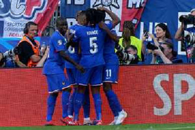 TVEM Kylian Mbappé of France celebrates after scoring a goal with teammates during the UEFA EURO 2024 group stage match between France and Poland at BVB Stadion Dortmund on June 25, 2024 in Dortmund, Germany. Photo by Emmanuele Mastrodonato/ag. Aldo Liverani sas/ AGENZIA ALDO LIVERANI SAS