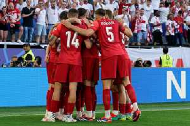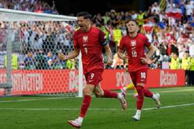 TVEM Poland celebrates after scoring a goal during the UEFA EURO 2024 group stage match between France and Poland at BVB Stadion Dortmund on June 25, 2024 in Dortmund, Germany. Photo by Emmanuele Mastrodonato/ag. Aldo Liverani sas