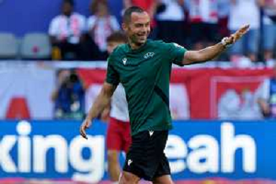 TVEM the referee Marco Guida of Italy during the UEFA EURO 2024 group stage match between France and Poland at BVB Stadion Dortmund on June 25, 2024 in Dortmund, Germany. Photo by Emmanuele Mastrodonato/ag. Aldo Liverani sas