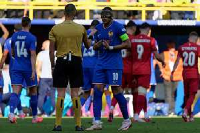 TVEM Adrien Rabiot of France protests with the referee Marco Guida of Italy during the UEFA EURO 2024 group stage match between France and Poland at BVB Stadion Dortmund on June 25, 2024 in Dortmund, Germany. Photo by Emmanuele Mastrodonato/ag. Aldo Liverani sas