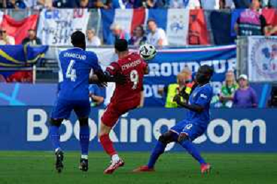 TVEM Robert Lewandowski of Poland and 13 France during the UEFA EURO 2024 group stage match between France and Poland at BVB Stadion Dortmund on June 25, 2024 in Dortmund, Germany. Photo by Emmanuele Mastrodonato/ag. Aldo Liverani sas