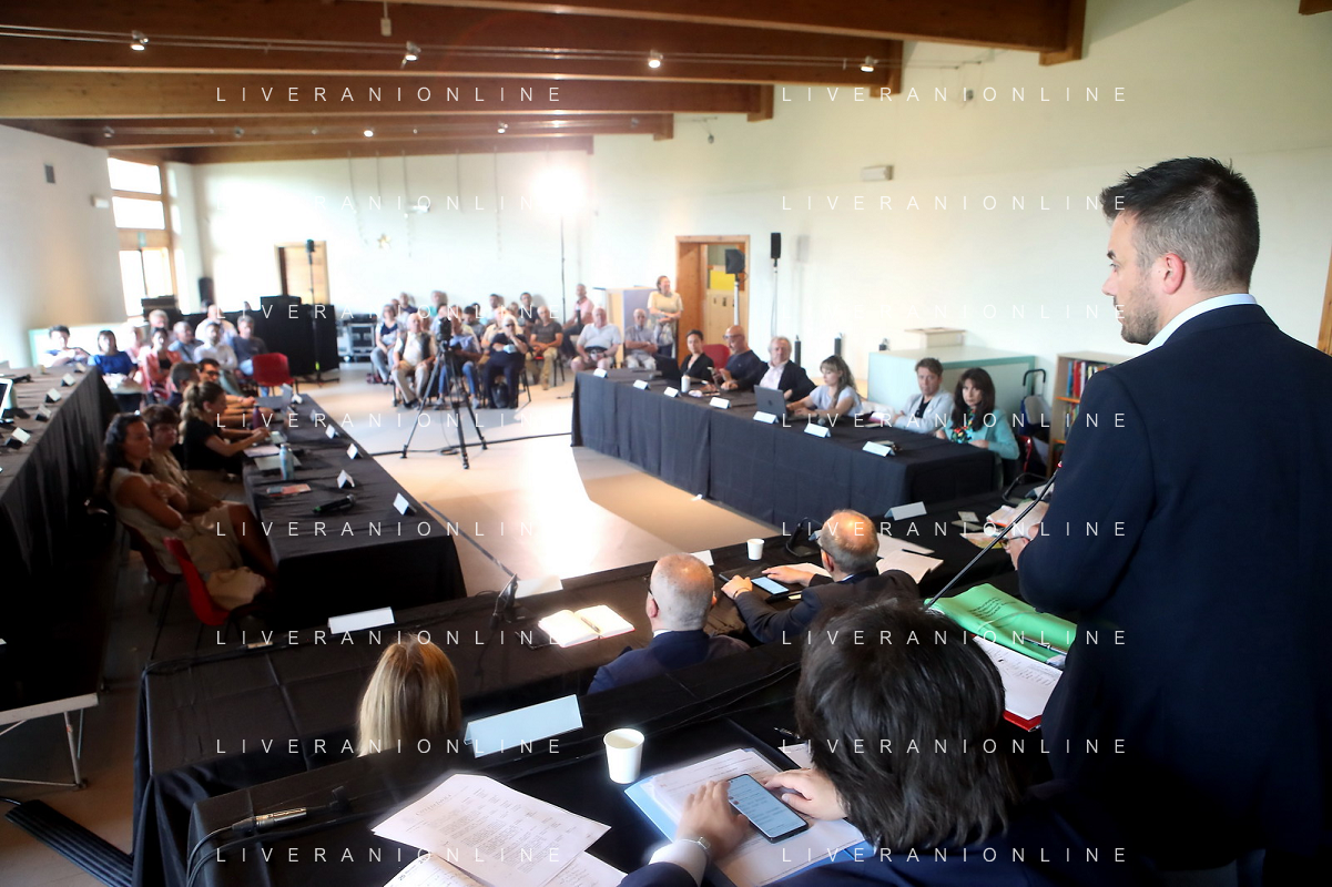 SAN PROSPERO FRAZIONE DI IMOLA 25 06 2024 CONSIGLIO COMUNALE POTENZIAMENTO DELLE FERROVIE NELLA FOTO SINDACO MARCO PANIERI FOTO GIANNI SANNA-AG ALDO LIVERANI SAS