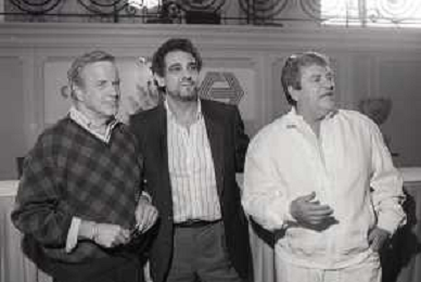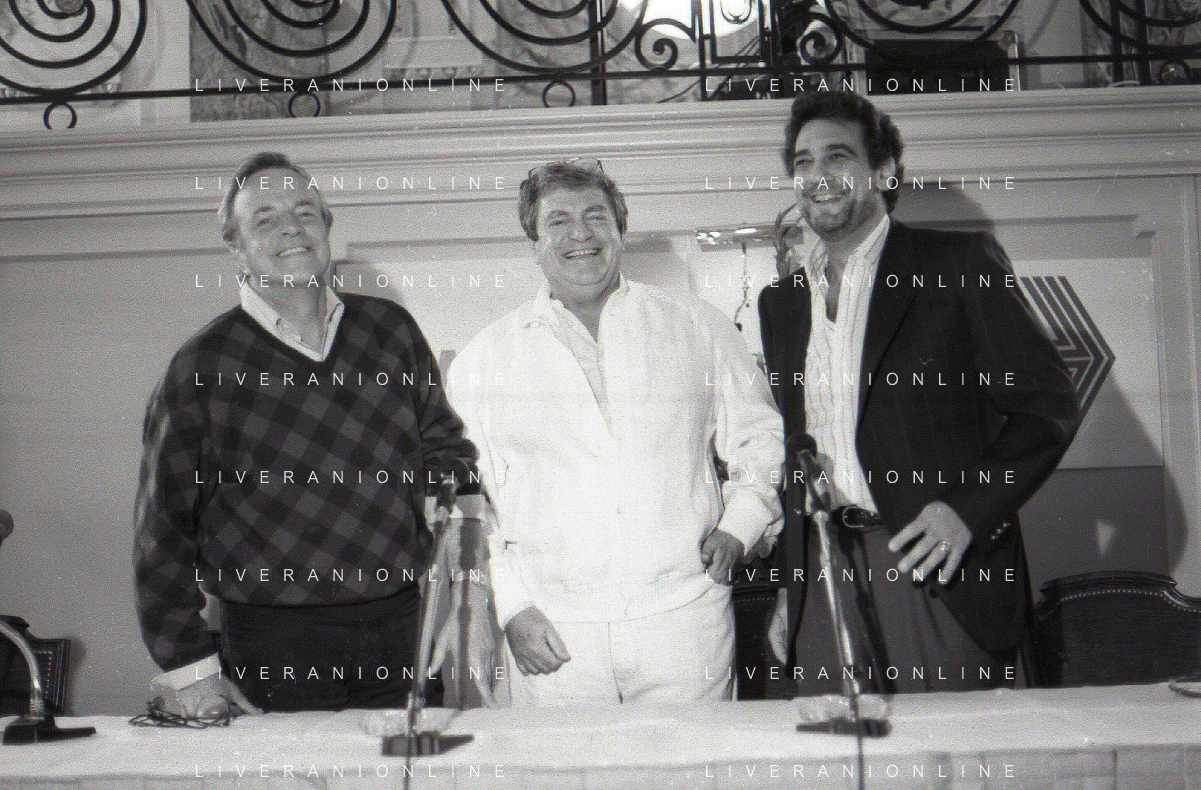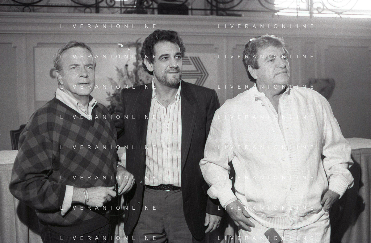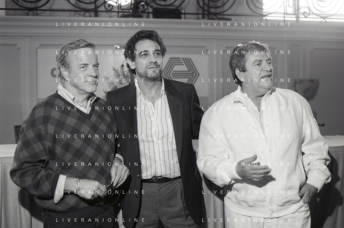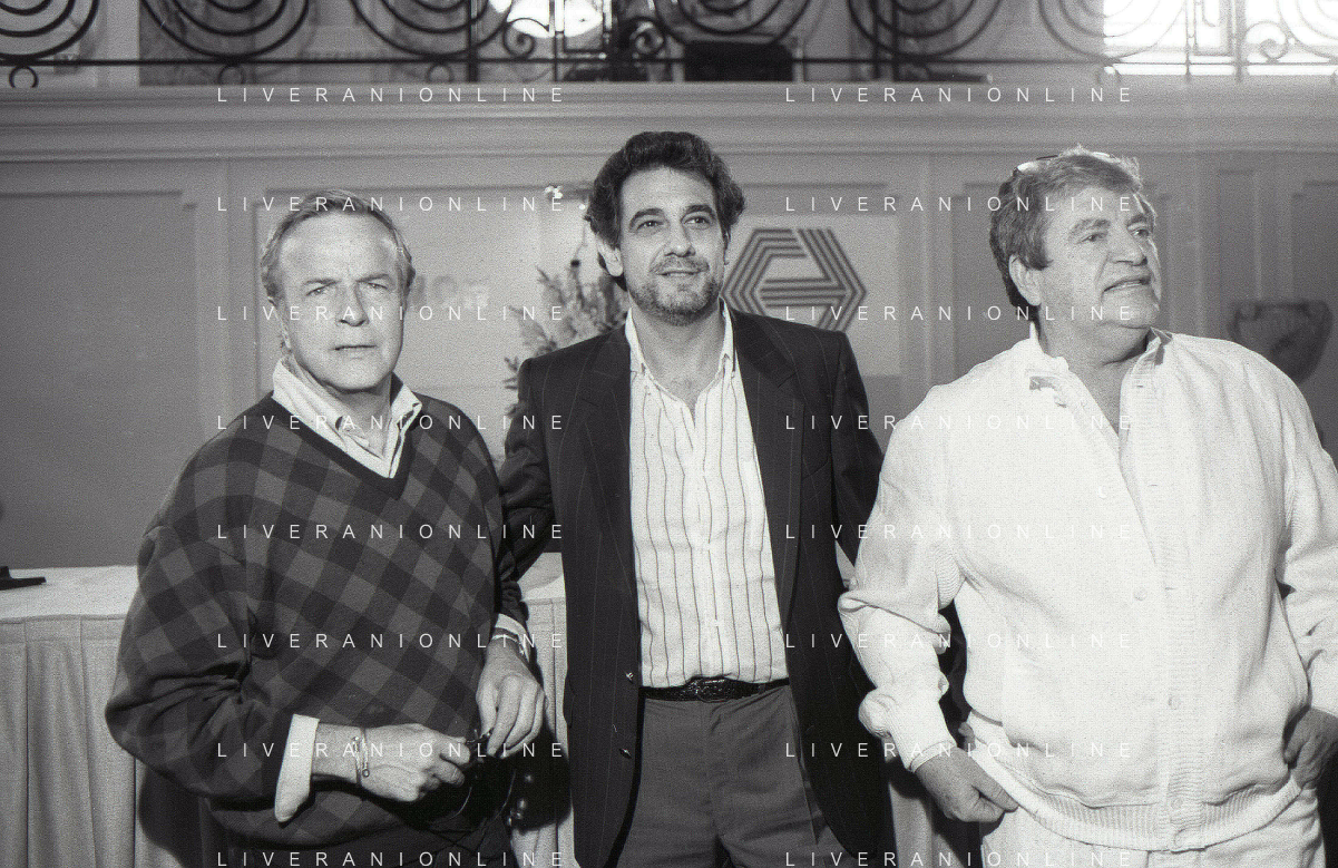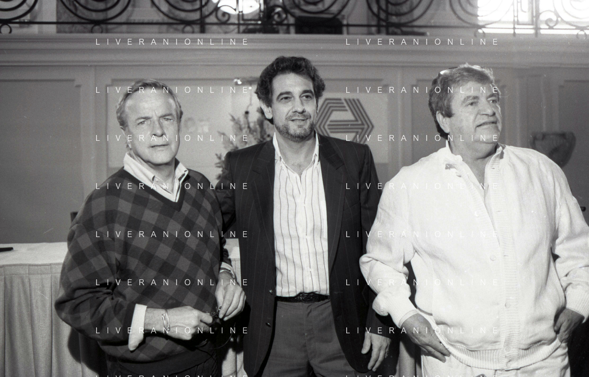 NEG-RETROSPETTIVA FRANCO ZEFFIRELLI REGISTA NELLA FOTO FRANCO ZEFFIRELLI CON GOLAN MENAHEM E PLACIDO DOMINGO NELL'ANNO 1986 A MILANO AG ALDO LIVERANI SAS
