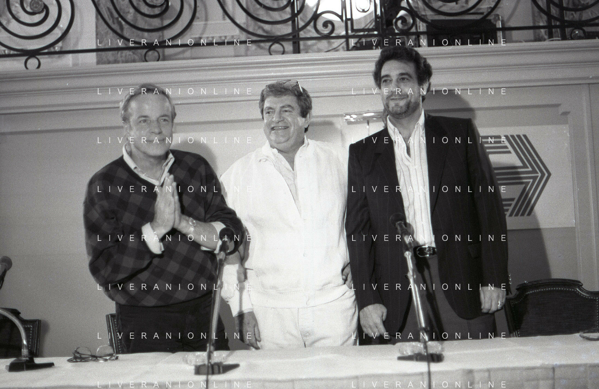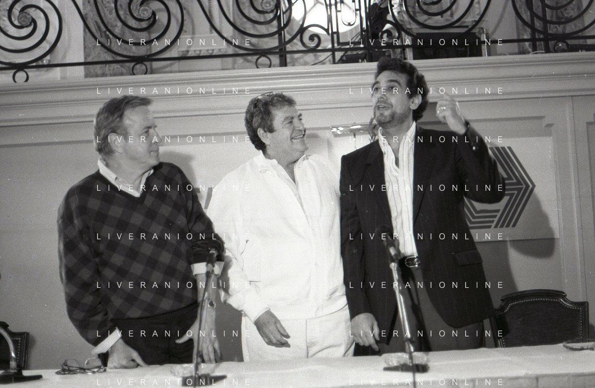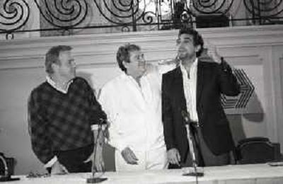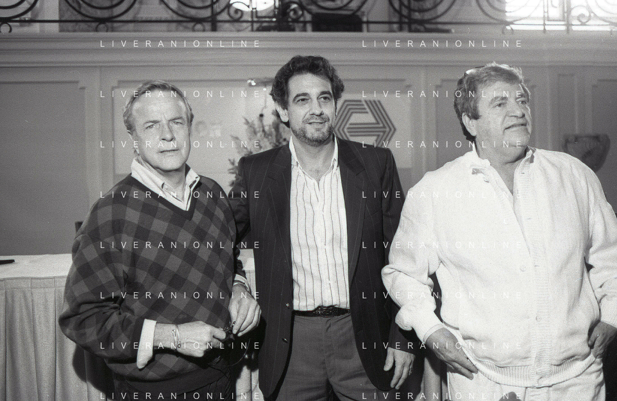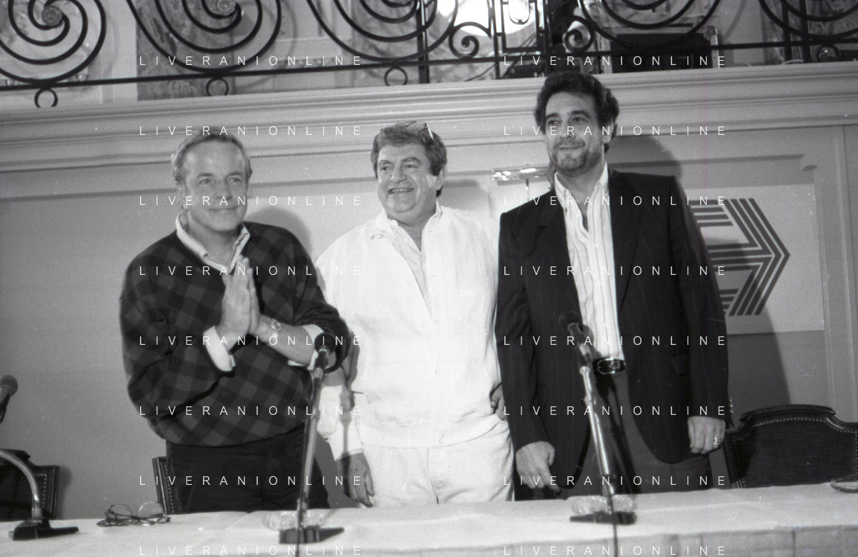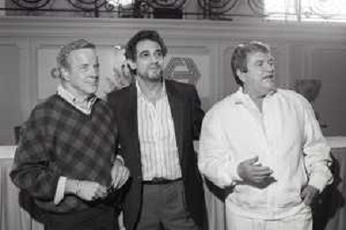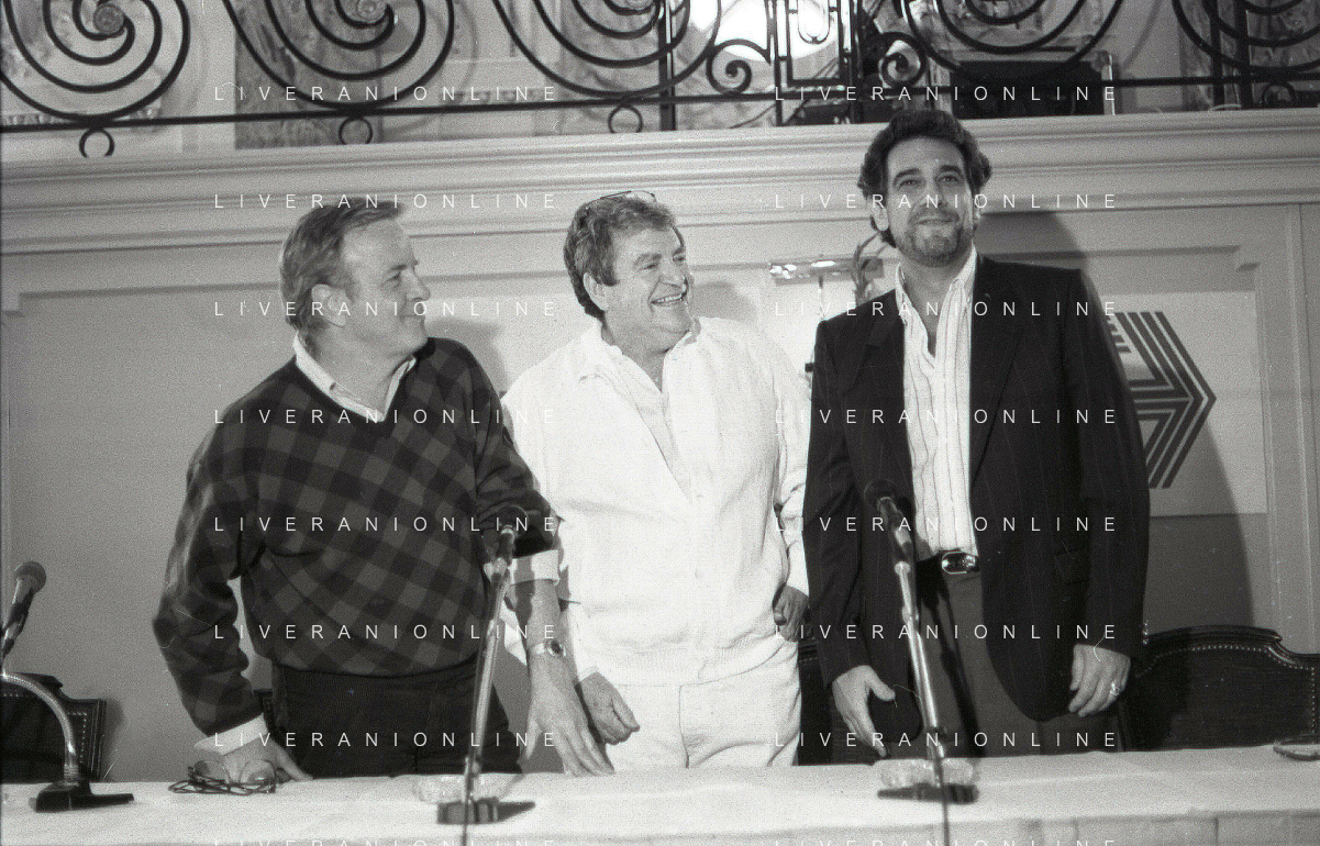 NEG-RETROSPETTIVA FRANCO ZEFFIRELLI REGISTA NELLA FOTO FRANCO ZEFFIRELLI CON GOLAN MENAHEM E PLACIDO DOMINGO NELL'ANNO 1986 A MILANO AG ALDO LIVERANI SAS