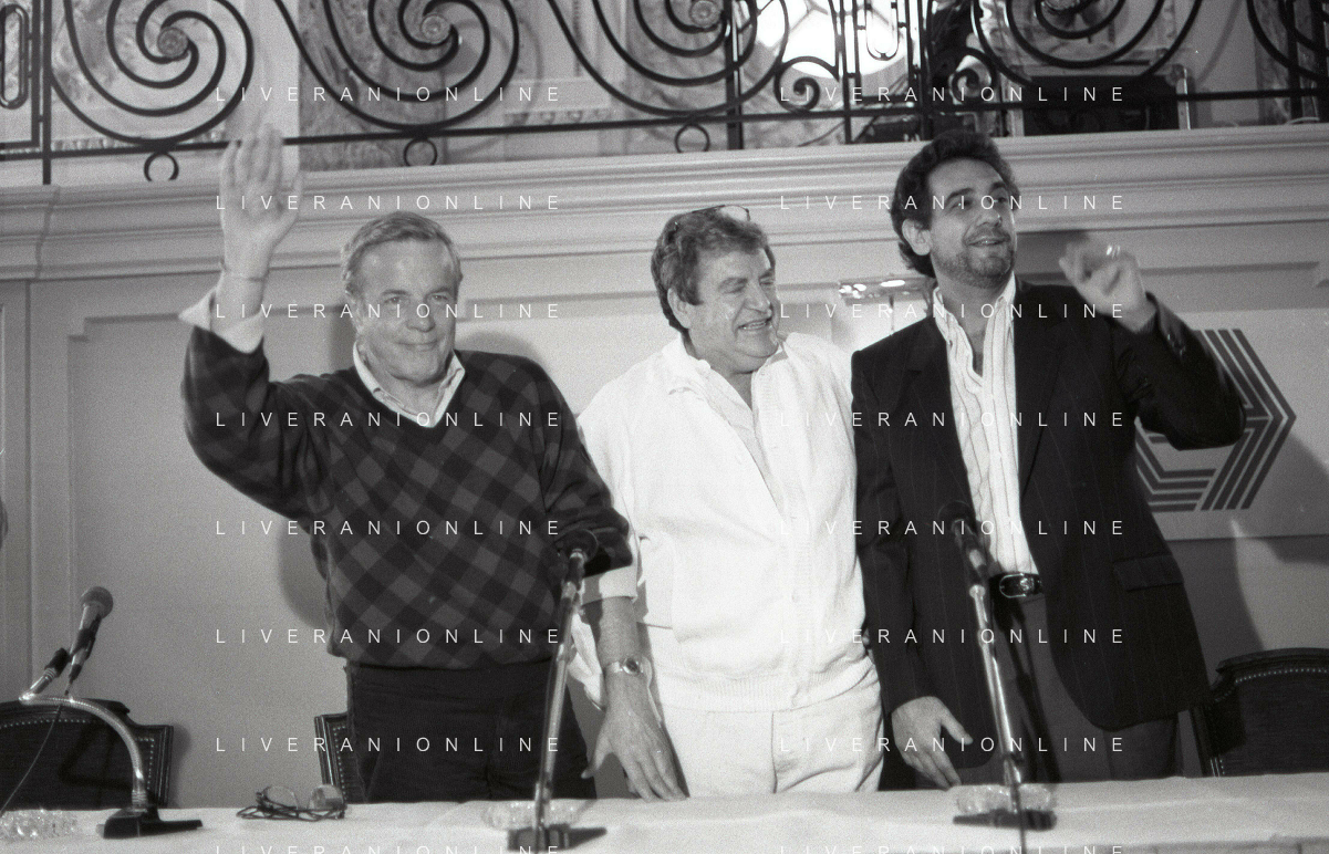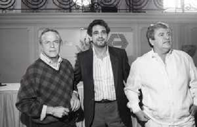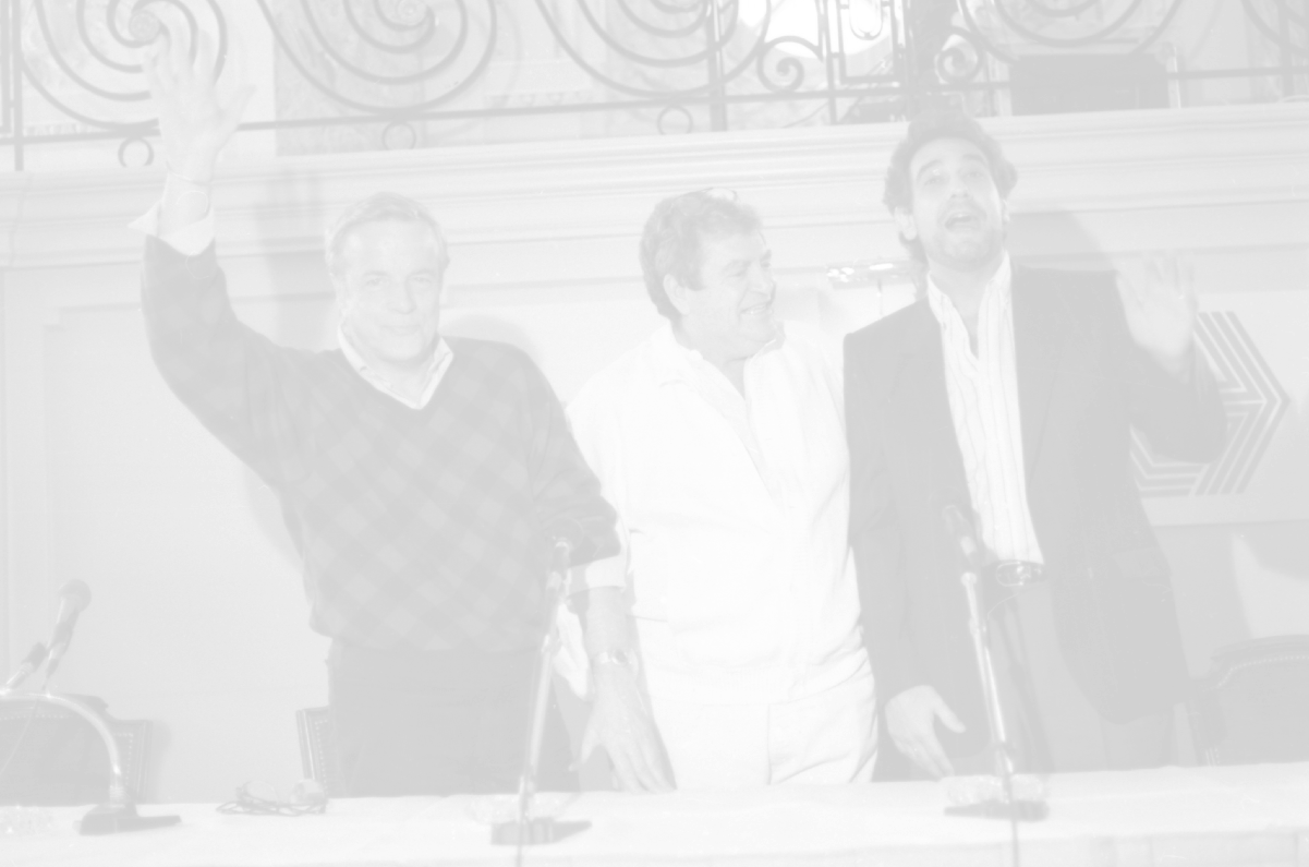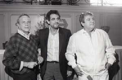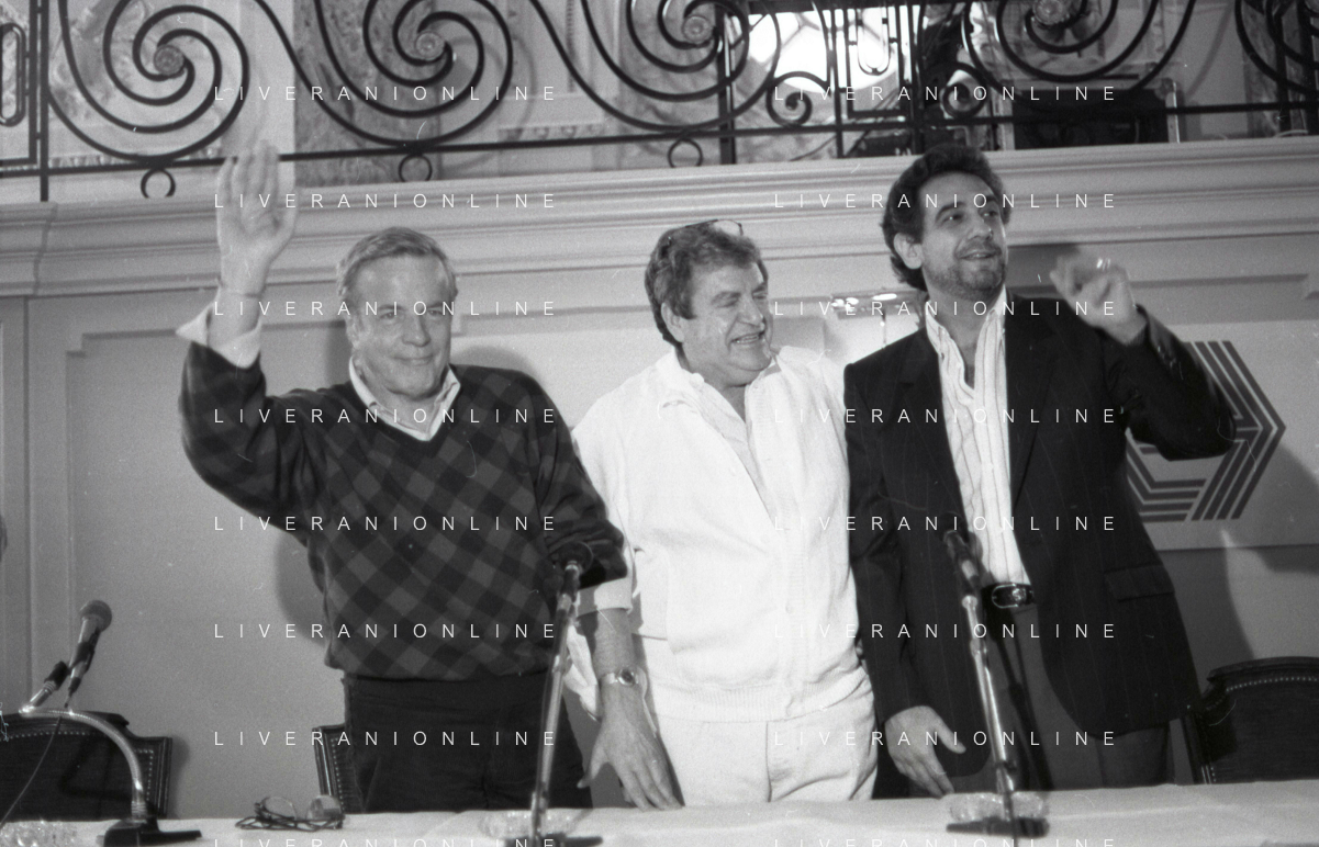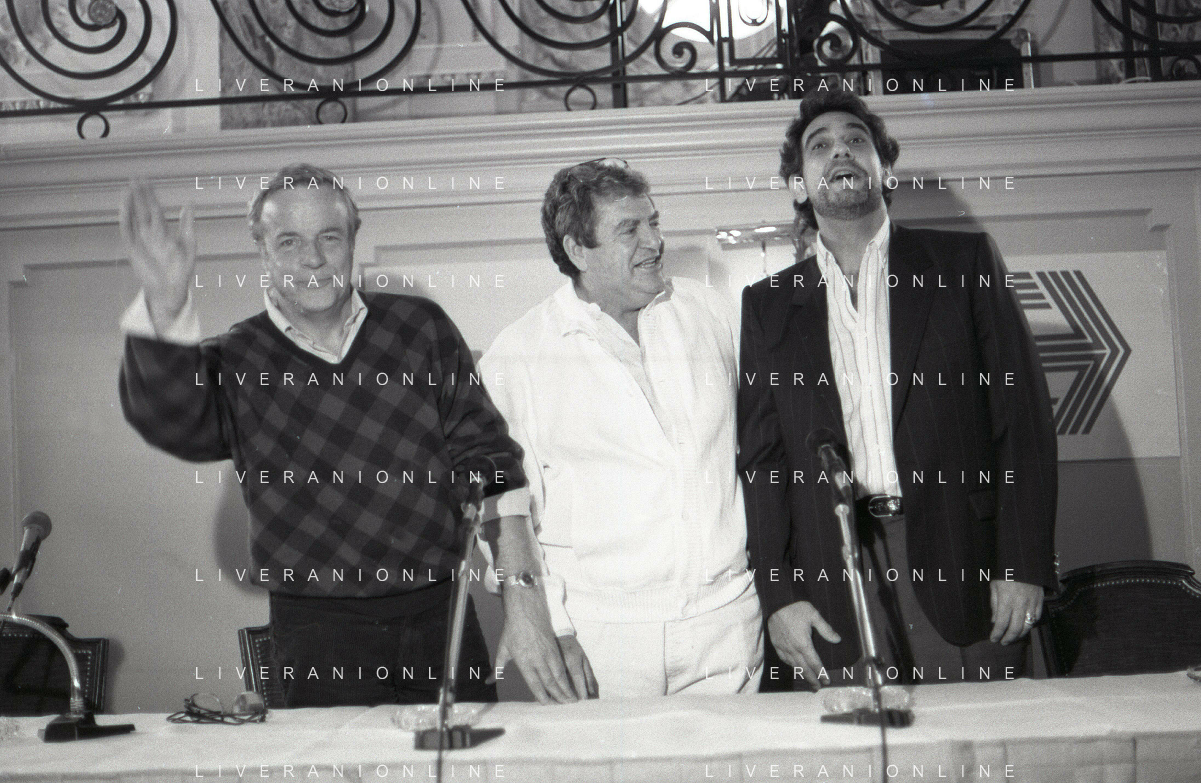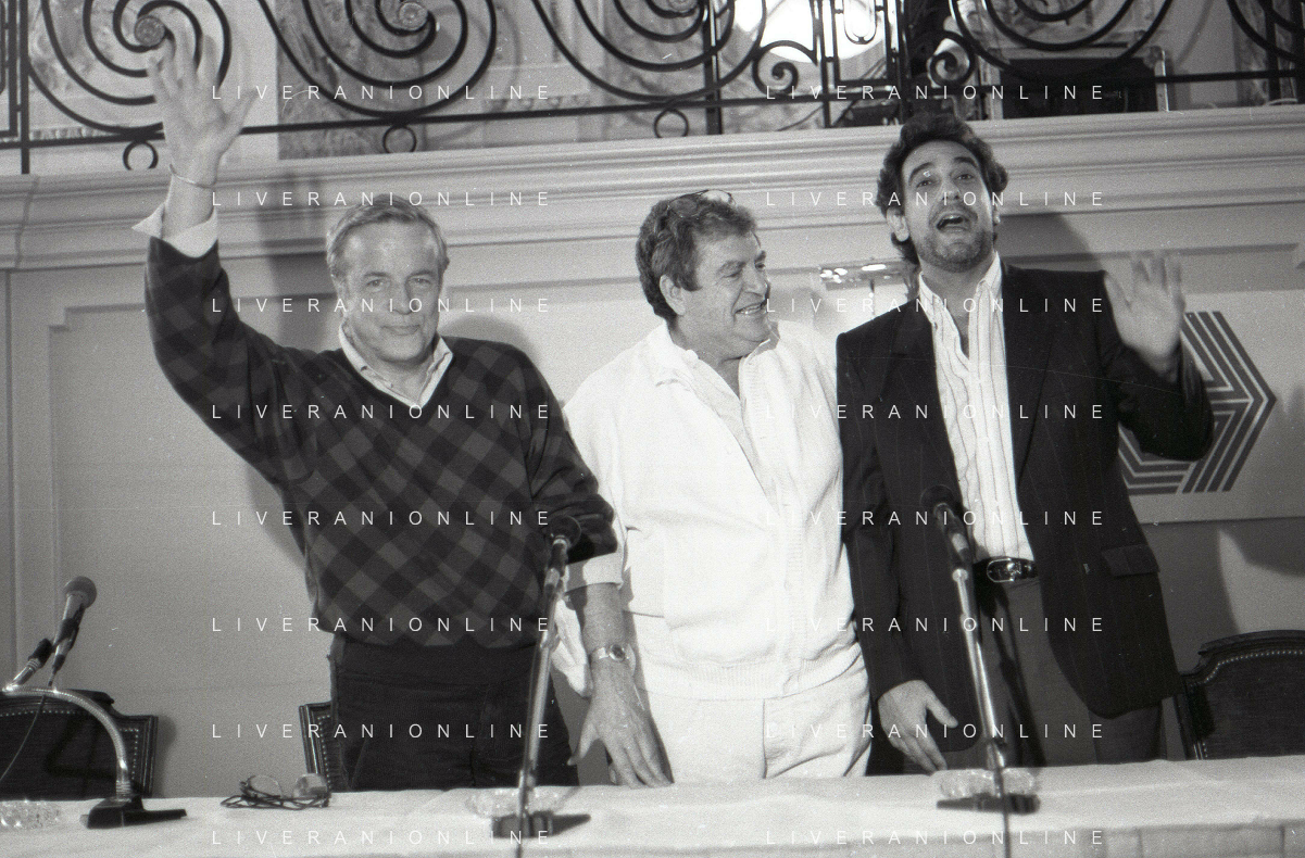 NEG-RETROSPETTIVA FRANCO ZEFFIRELLI REGISTA NELLA FOTO FRANCO ZEFFIRELLI CON GOLAN MENAHEM E PLACIDO DOMINGO NELL'ANNO 1986 A MILANO AG ALDO LIVERANI SAS