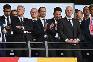Svizzera vs Italia - UEFA EURO 2024 nella foto da SX Gabriele Gravina presidente FIGC, Aleksander Ceferin presidente UEFA e Gianni Infantino presidente FIFA Berlino (GER) 29-06-2024 Olympiastadion - Stadio Olimpico Campionato Europeo di Calcio - UEFA EURO 2024 ottavi di finale foto Roberto Garavaglia/Agenzia Aldo Liverani sas