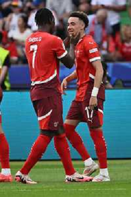 Svizzera vs Italia - UEFA EURO 2024 nella foto Breel Embolo (Svizzera) e Ruben Vargas (Svizzera) esultanza dopo il gol del 2 a 0 Berlino (GER) 29-06-2024 Olympiastadion - Stadio Olimpico Campionato Europeo di Calcio - UEFA EURO 2024 ottavi di finale foto Roberto Garavaglia/Agenzia Aldo Liverani sas/ AGENZIA ALDO LIVERANI SAS