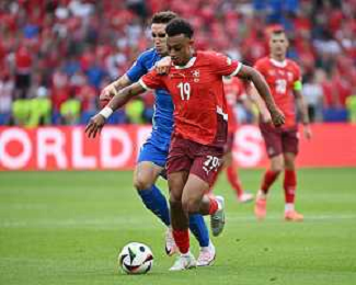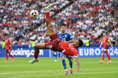 Svizzera vs Italia - UEFA EURO 2024 nella foto Dan Ndoye (Svizzera) prova il gol in rovesciata Berlino (GER) 29-06-2024 Olympiastadion - Stadio Olimpico Campionato Europeo di Calcio - UEFA EURO 2024 ottavi di finale foto Roberto Garavaglia/Agenzia Aldo Liverani sas/ AGENZIA ALDO LIVERANI SAS