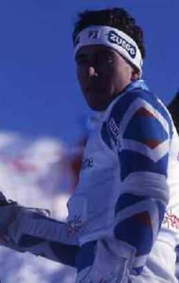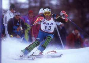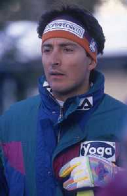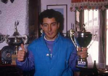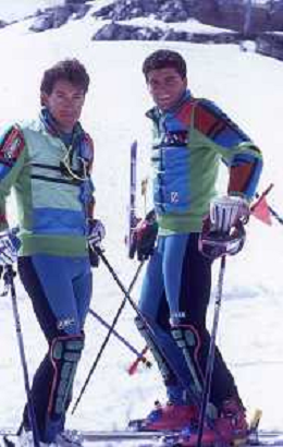 DIAP-RETROSPETTIVA RICHARD PRAMOTTON SCI NELLA FOTO RICHARD PRAMOTTON NELL'ANNO 1988-1989 CON ALBERTO TOMBA AG ALDO LIVERANI SAS